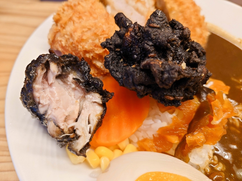 黑嚕嚕雞是炸粉有加入天然墨魚粉,