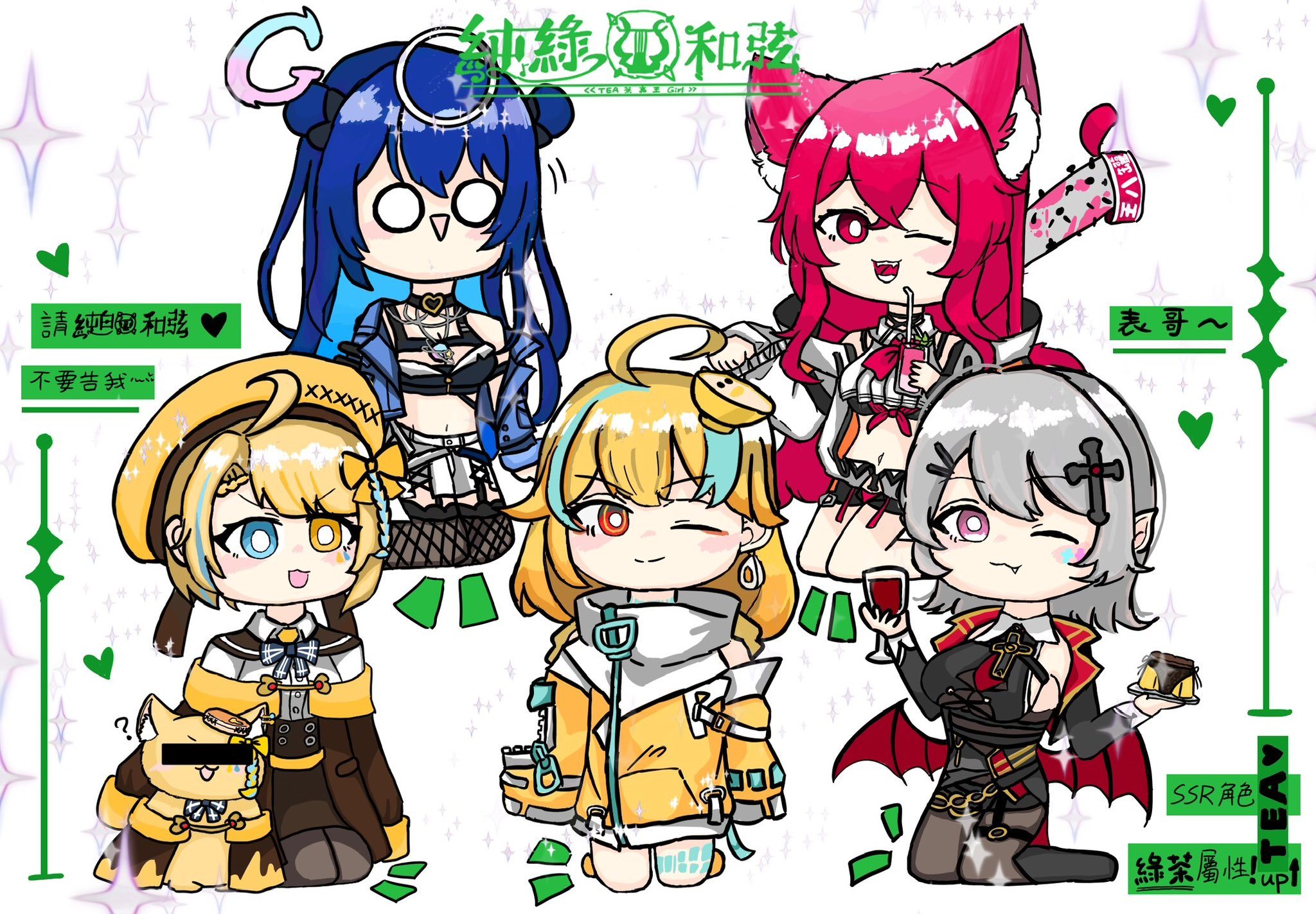純綠和弦www,上面的五人聯動直播之後,粉絲幫畫的圖,滿可愛也滿有趣的