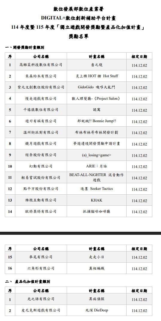 變成"114 年度暨 115 年度獨立遊戲開發獎勵暨產品化加值計畫"