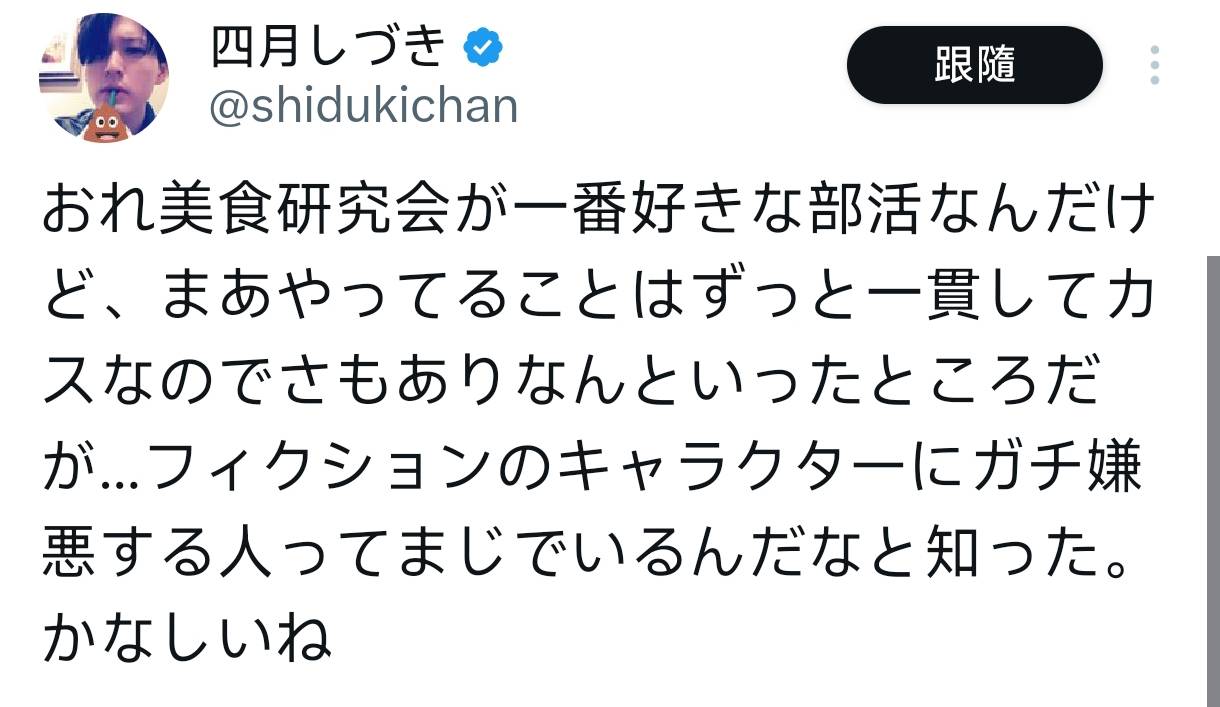 但我真的沒想到,居然真的有人會對虛構角色產生認真的厭惡,真是令人難過。