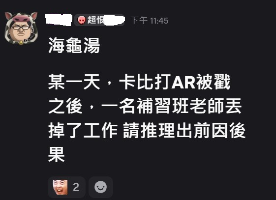 [閒聊] 海龜湯:打AR被戳,一名補習班老師丟工作