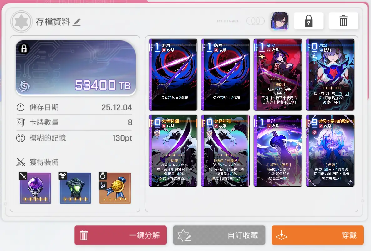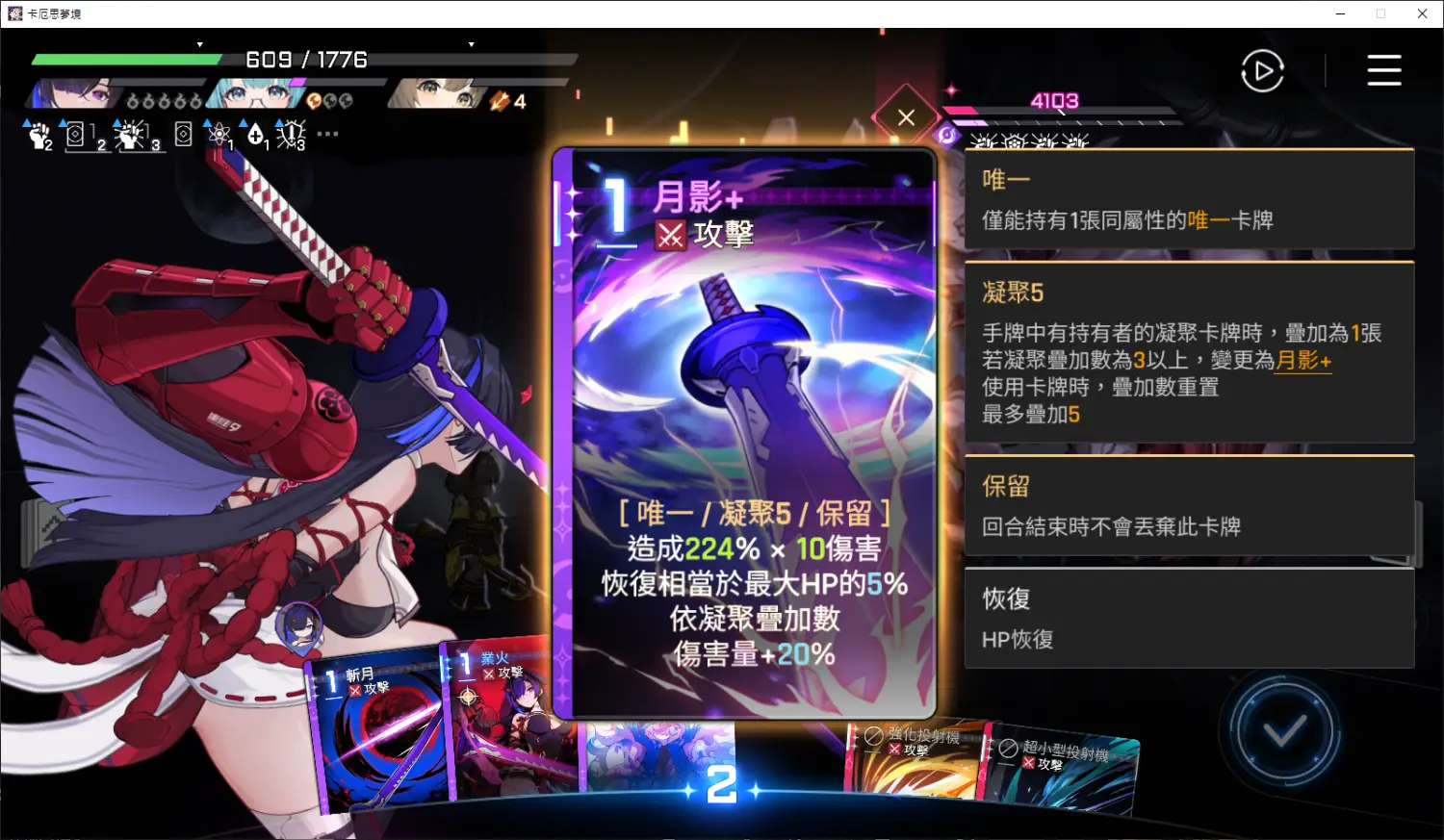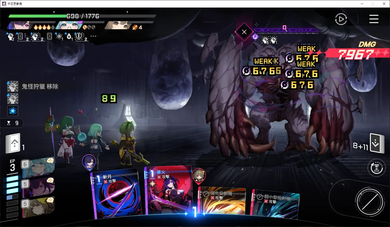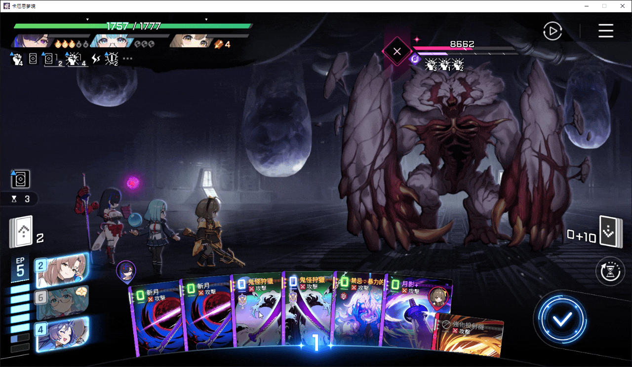 因為鬼狩只有一張所以月影的倍率上不太去 主要是靠層數硬打傷害