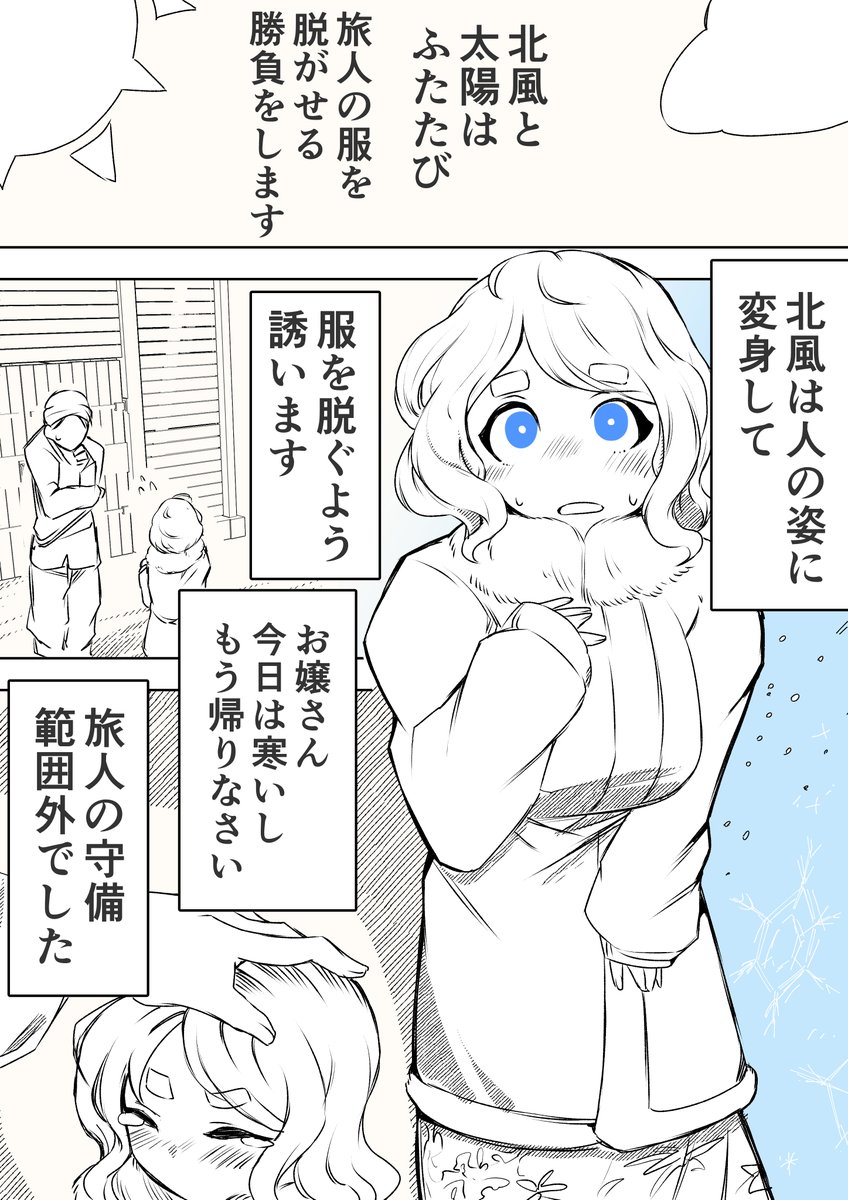 北風跟太陽比賽誰能讓旅人脫衣,北風失敗了,換太陽上場