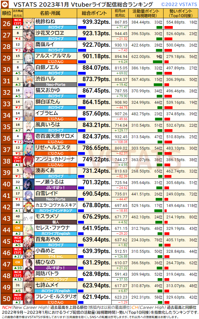 [Vtub] VSTATS 2023年1月Vtuber綜合排名