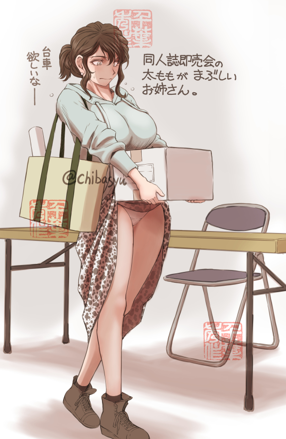 在同人會場搬東西沒注意到夾起裙子的隔壁攤主