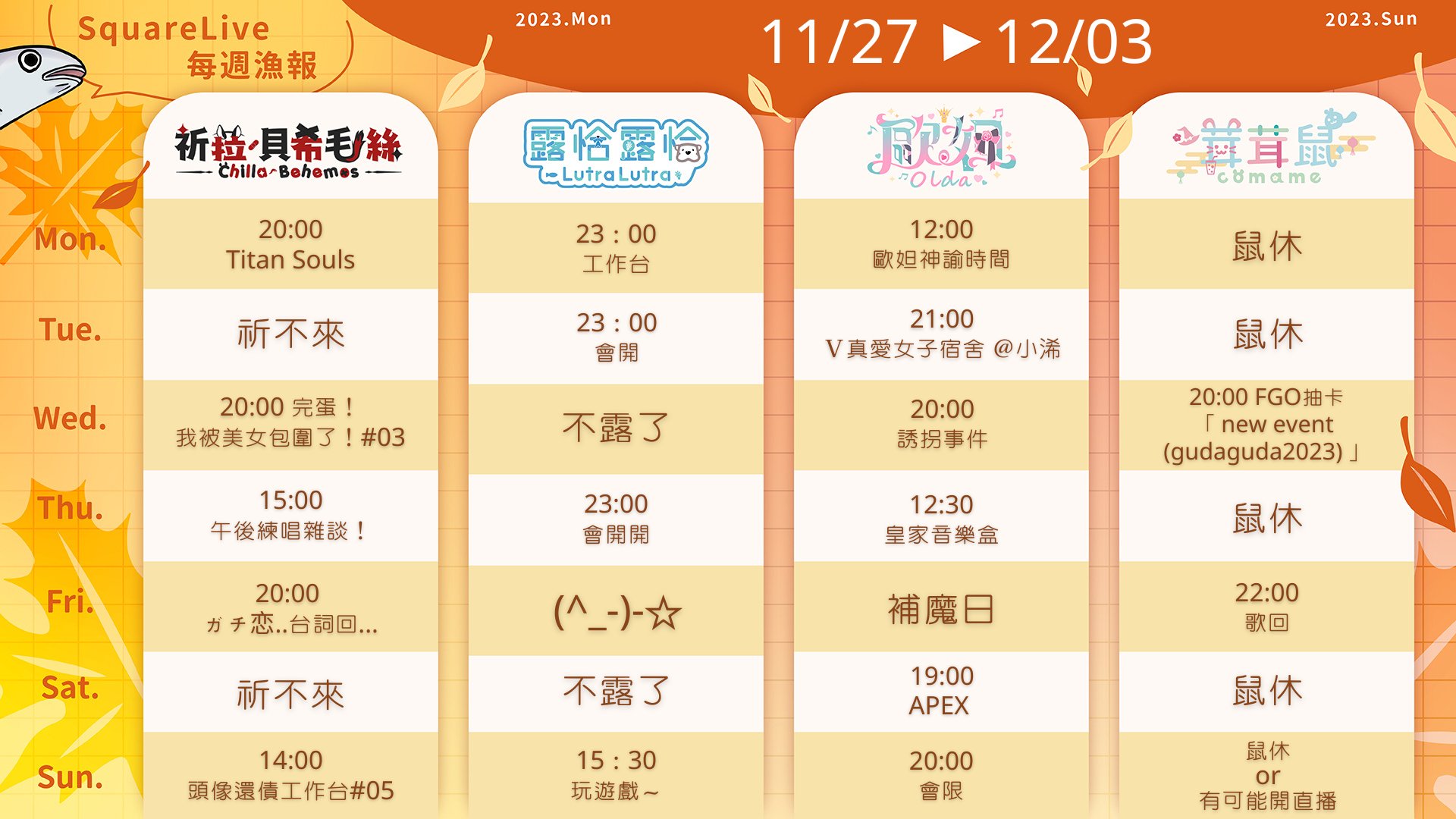 今天(週三11/29)晚上2000茸茸鼠會直播FGO抽卡「new event(gudaguda2023)」