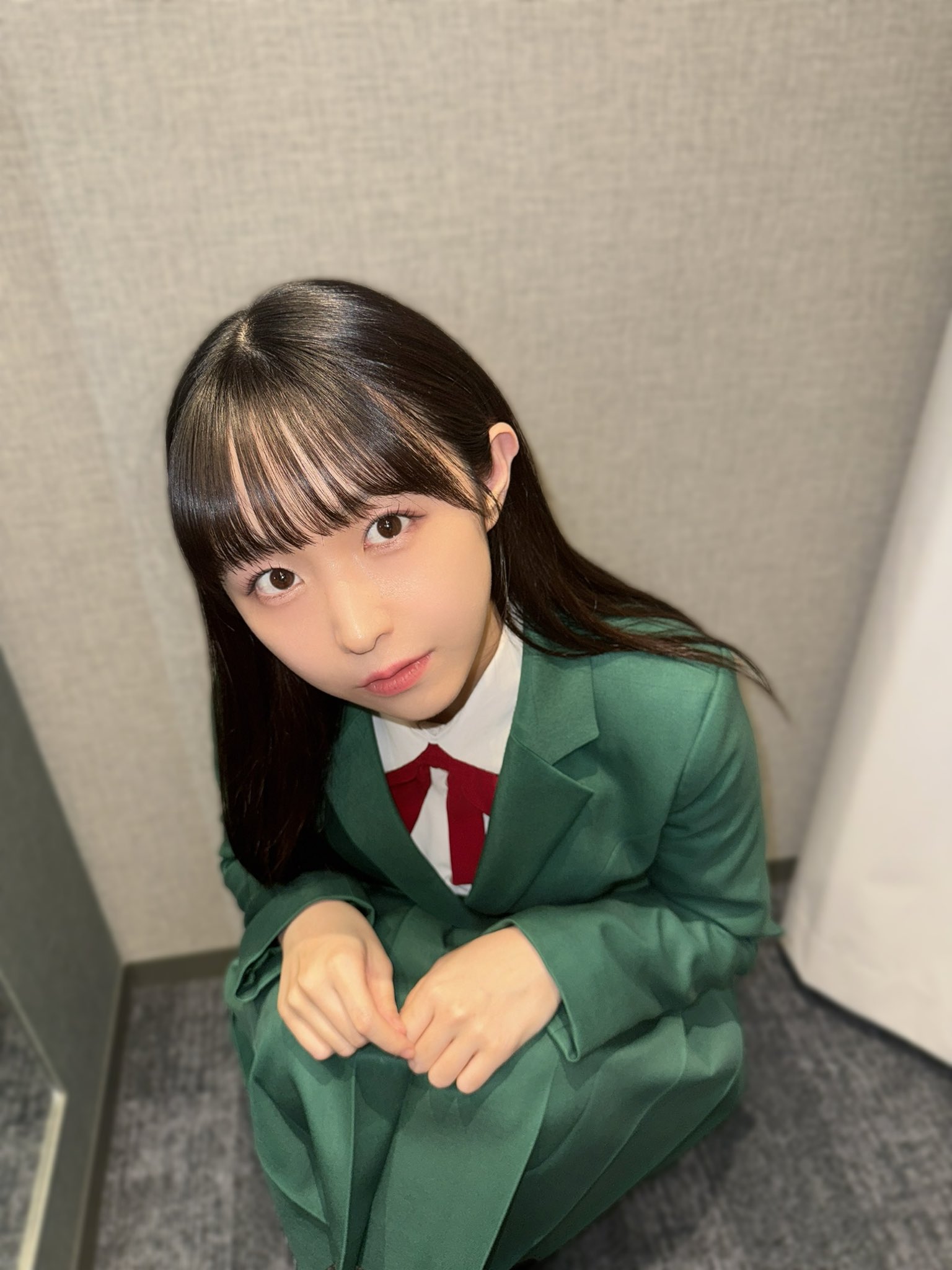 披綠制服的瀏海和眼神好像松本麗世