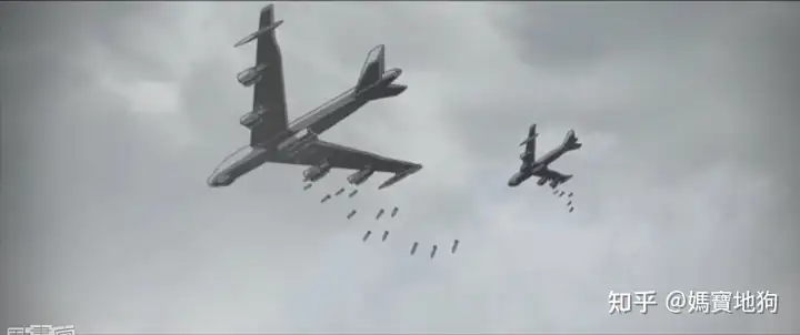 Mk82、發射AGM-65小牛飛彈或AGM-158 JASSM,這些武器的射程都是不一樣的,所以動畫中這些武器發射的順序是錯誤的;AGM-158 JASSM射程最遠,超過370公里,應該先發射;再來是AGM-65小牛飛彈,射程48公里,最後才是B52扔Mk82;為何聯合國軍把這些武器幾乎在同時間一起發射,不懂。