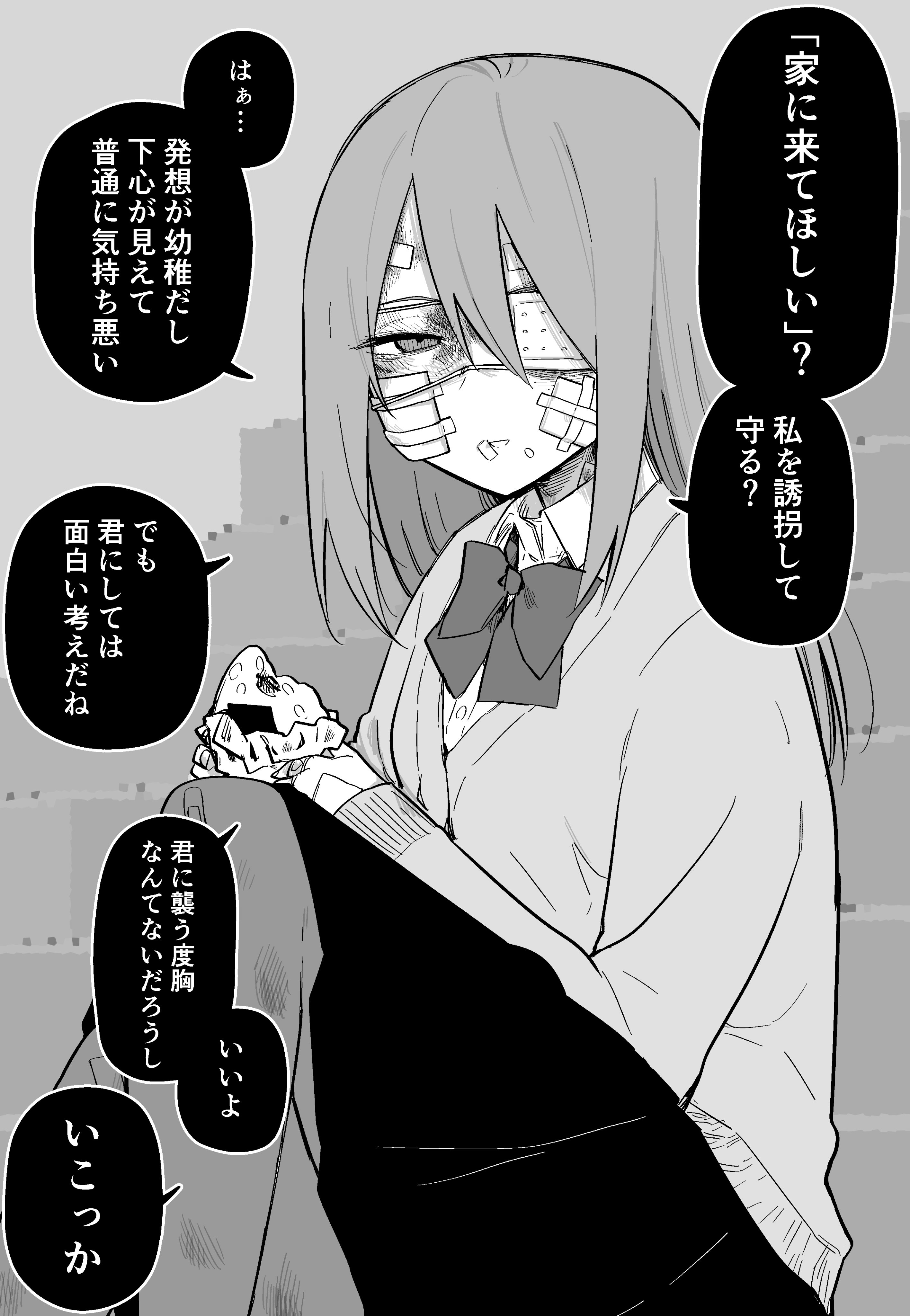 「『明天也一起吃飯吧』?當然不要,一直盯著我吃東西感覺很噁心…哈啊…早餐我喜歡吃飯跟味噌湯。」 「『我睡地板你睡床』?你的床看起來很臭,而且我更喜歡在地板睡覺,所以我要睡地板,欸…難道說你在期待我說為了向你道歉而一起睡之類的話嗎?噁心。」![Re: [閒聊] 想要照顧全身是傷的同學 Re: [閒聊] 想要照顧全身是傷的同學](https://pbs.twimg.com/media/Fx2Idi9aUAAyb8x.jpg)