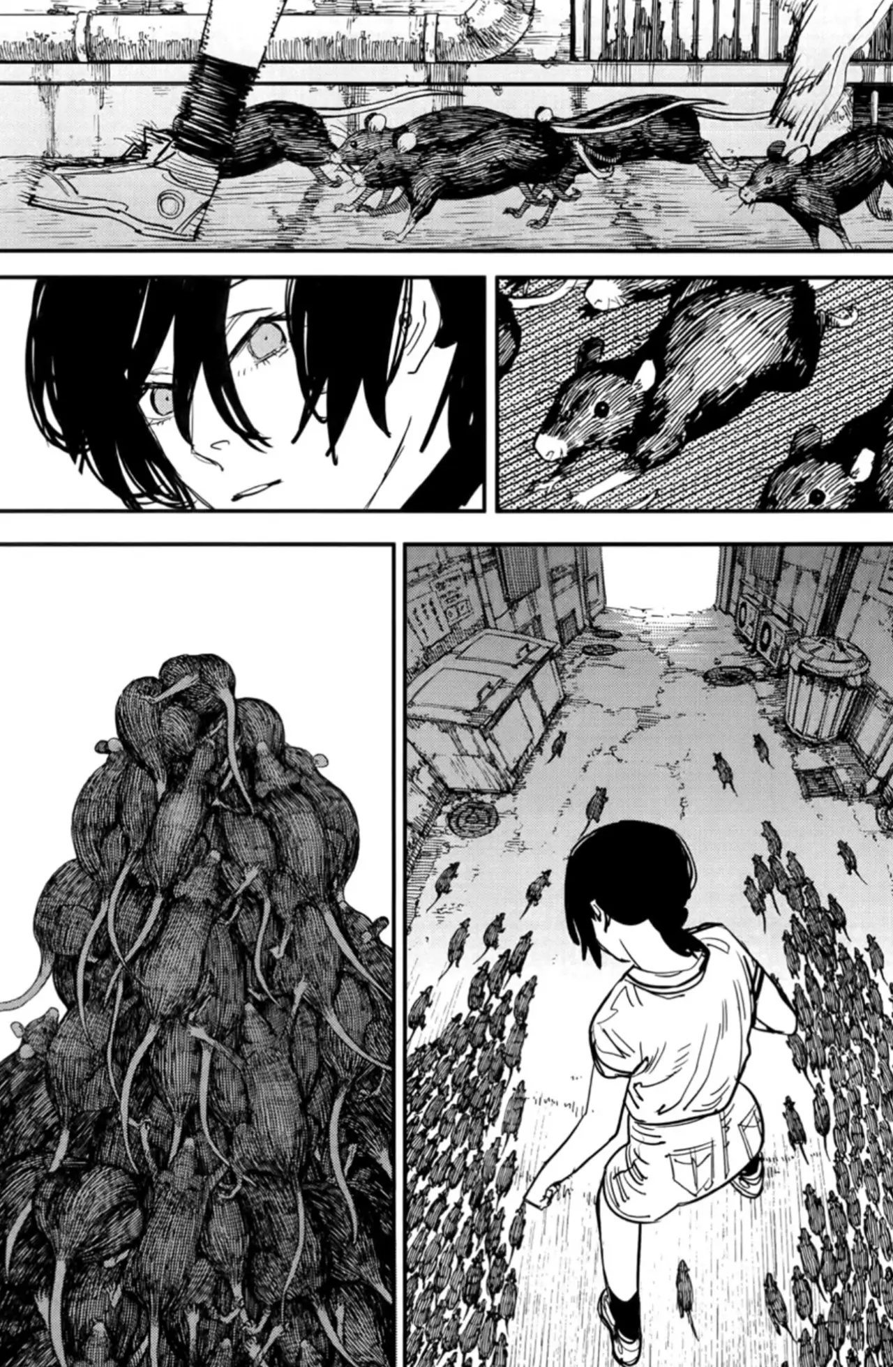 Re: [閒聊] 鏈鋸人136 東立雞雞~~~~! 一片喜氣洋洋彷彿戰爭結束還是登月成功了的世界 只有淀治因為打怪濟世的功勞被劫了無能鬱悶 才剛到學校就被極端人物找上 這些人以自居的正義藉著鏈鋸人的議題在使用暴力