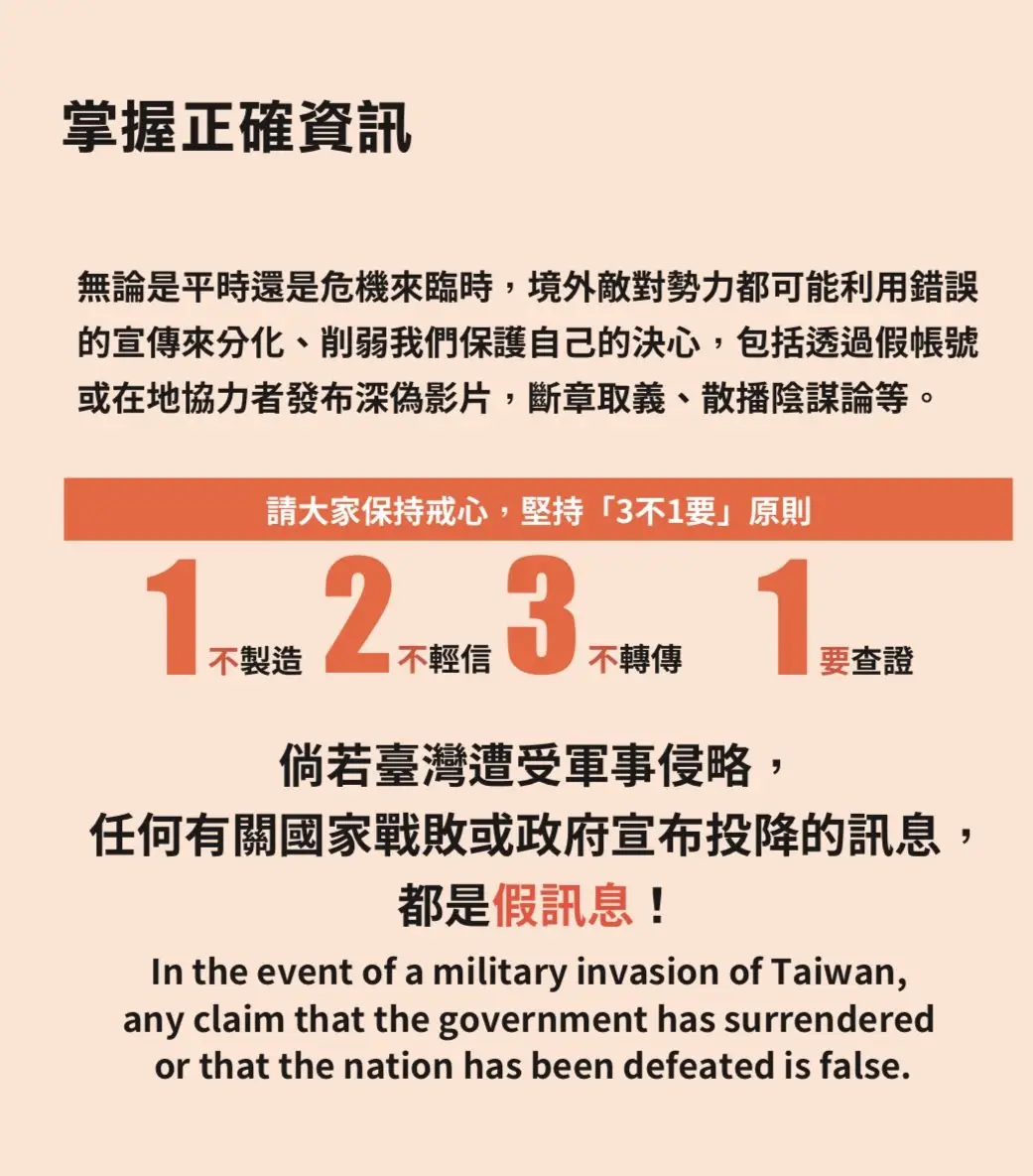 9月16日由國防部推出的新版「台灣全民安全指引」