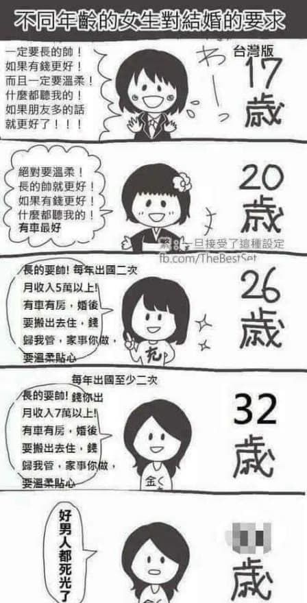 Re: [新聞] 國發會主委劉鏡清:女性找不到理想結婚官員整天幹一些幹話 女人想要男人有錢幫她改變生活 男人批評女人現實跟不看看自己 可是大多人都低薪窮忙 看看我們的薪資、物價、房價2
