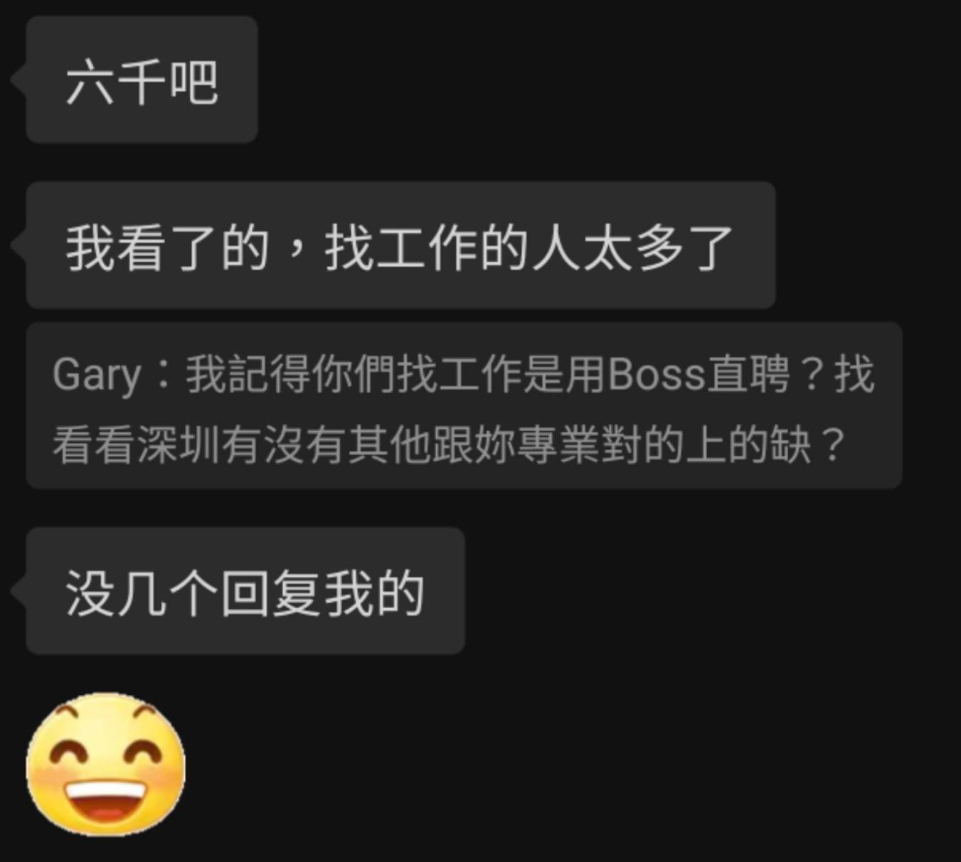 我有跟她說台灣房租很貴 她說深圳也很貴(?