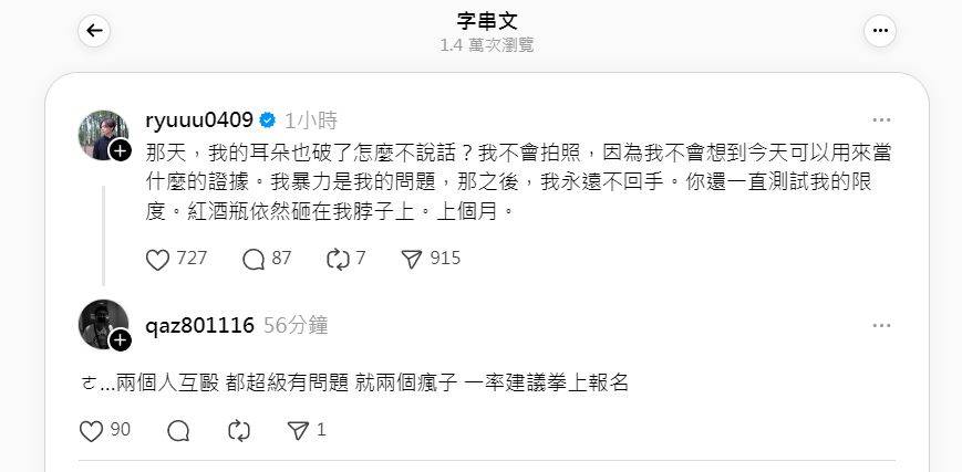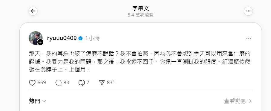 中國女畫家控Ryu家暴!「遭狂毆、掐脖」傷勢照曝:他偷聯繫Yuma,這三個人的故事也太持久了,還以為已經告一段落了說,有沒有他們的八卦?