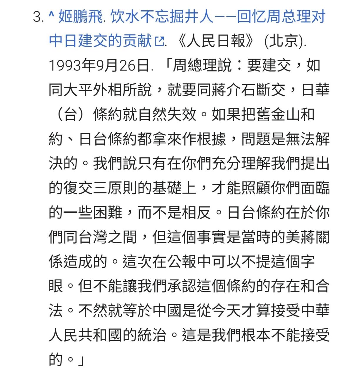 屬於日本,那結果是中日斷交,恢復戰