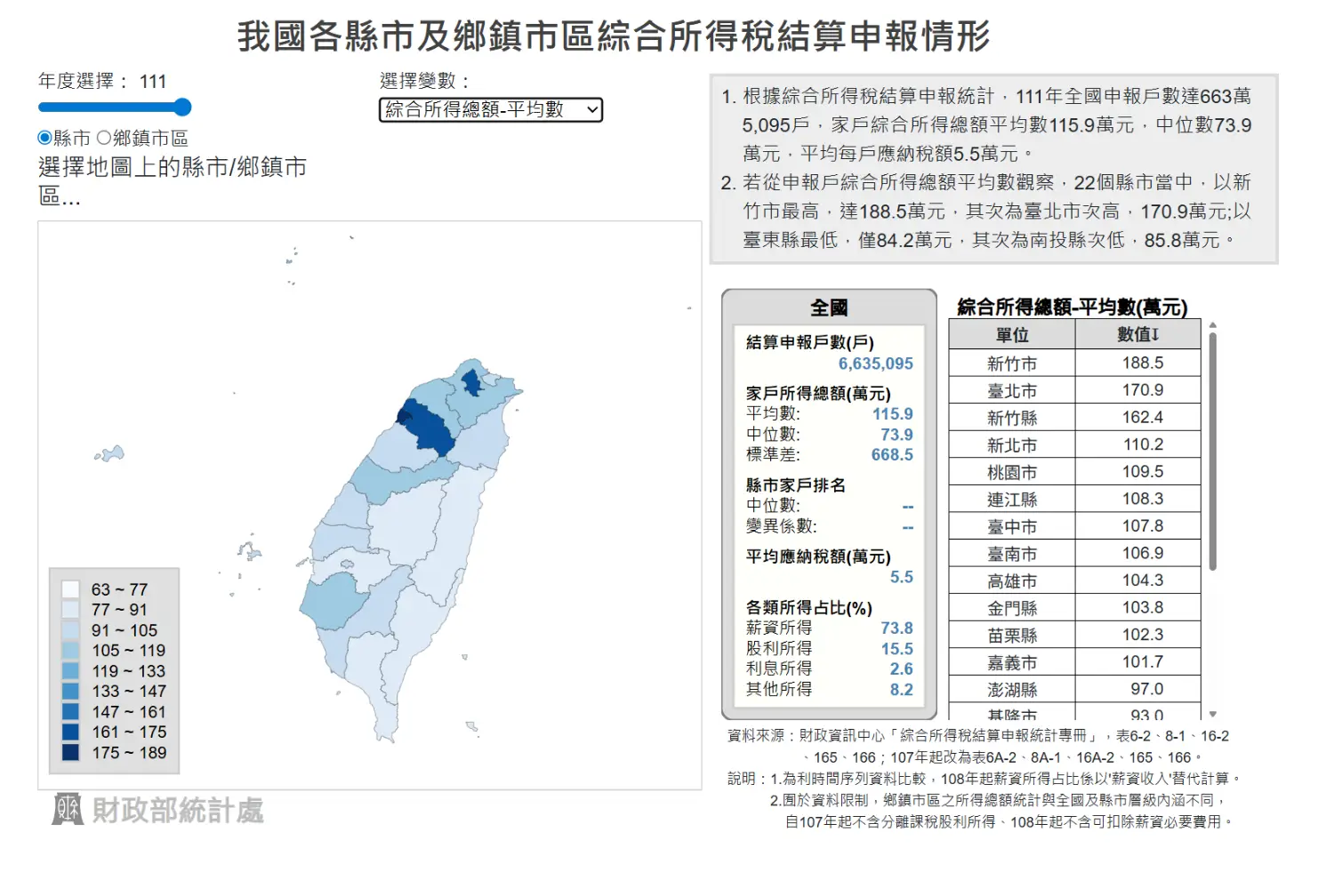 本島綜所稅平均排名靠前的是 新竹 台北 新北 桃園 台中