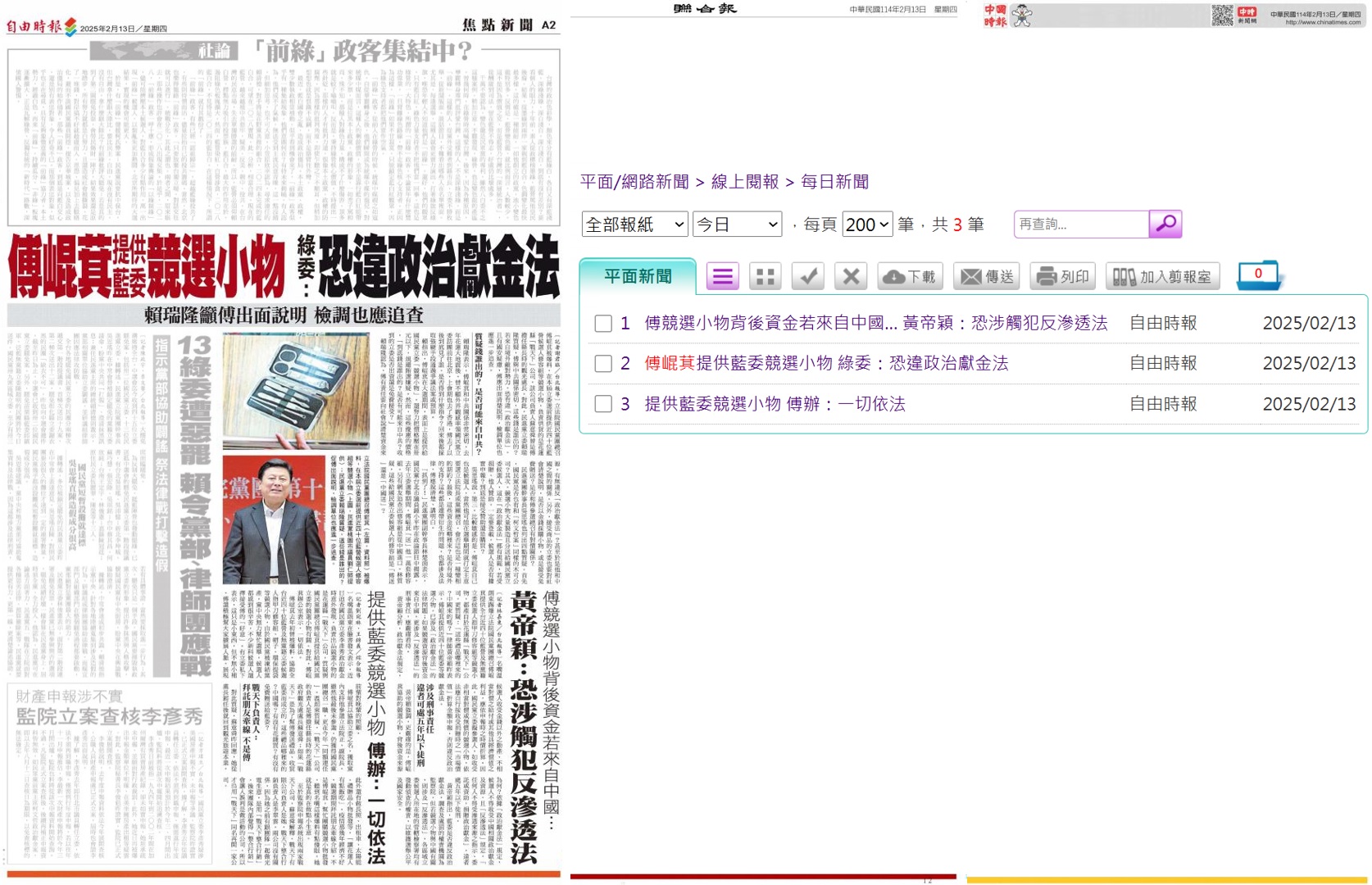 : 接受中國直接指揮、調度的聯合報、中國時報,