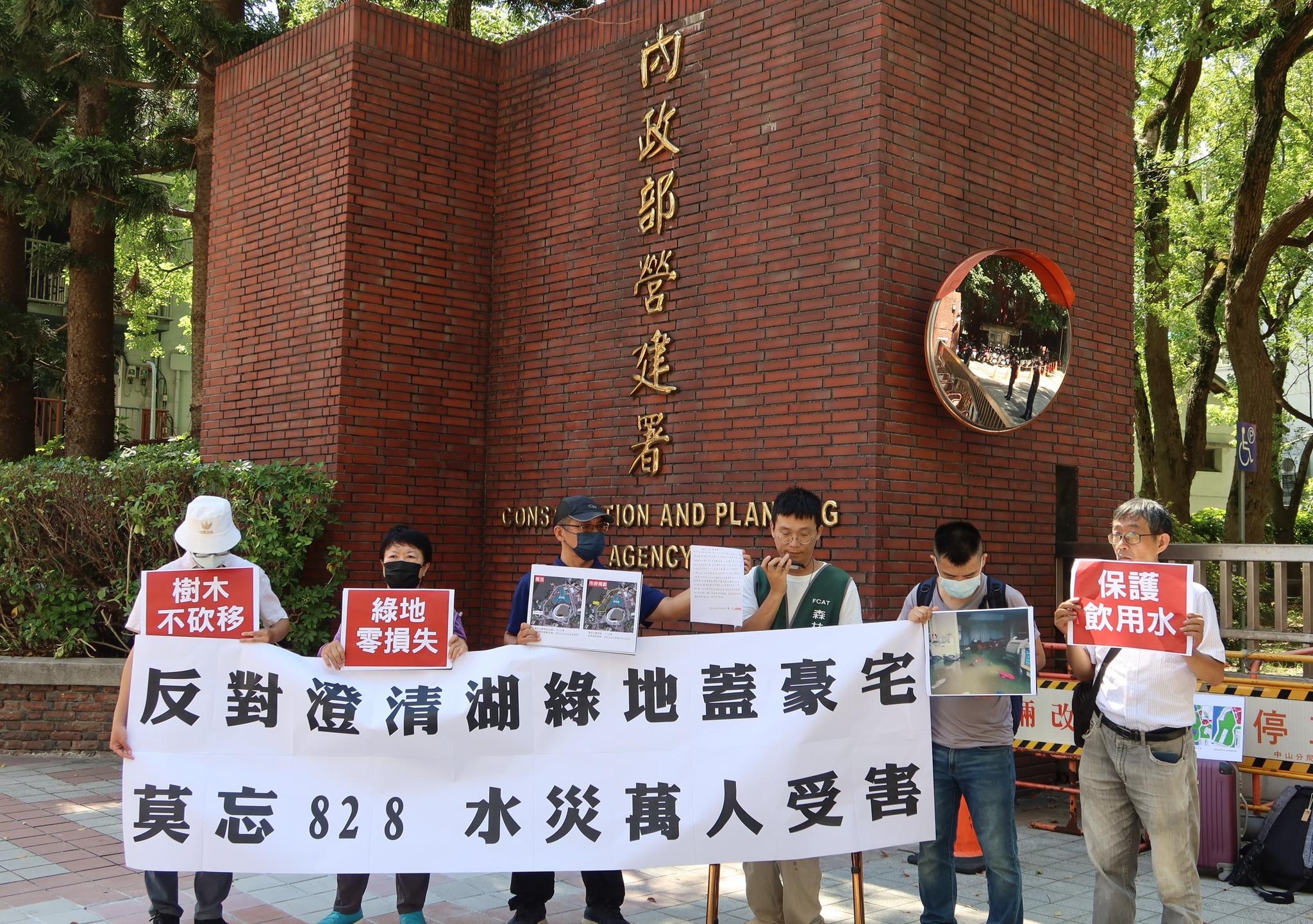 : 森林城市協會在營建署前,反對澄清湖綠地蓋豪宅。(圖/森林城市協會提供)