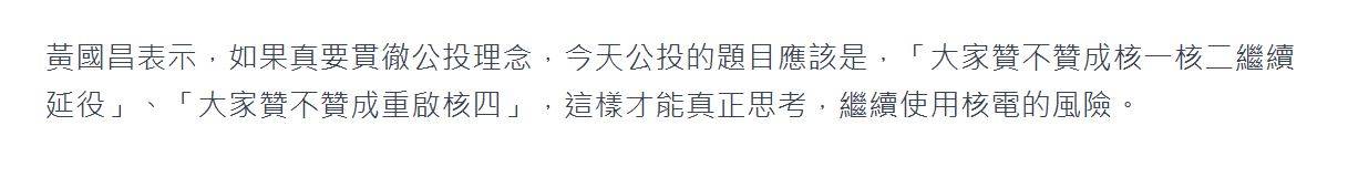 Re: [討論] 黃國昌:核三延役公投反方行政院空白擺爛: 不是啊 你民眾黨公投主文 「您是否同意第三核能發電廠經主管機關同意確認無安全疑慮後,繼續運轉?」 我之前就說了5