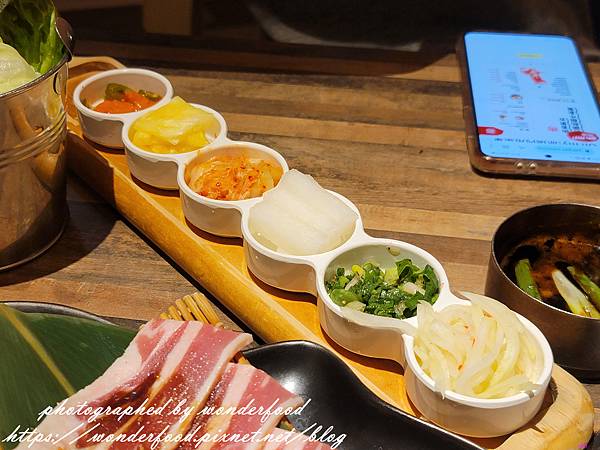 蔥鹽醬、黃檸檬、大蒜辣椒、黃綠櫛瓜、韓式泡菜、大根