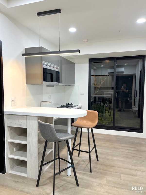 特別是吧檯給我的感覺非常放鬆,現在入住都在上面用餐,這兩個高腳椅挑了許久,還好眼光不錯,非常搭,吧檯下方也有預留掃地機器人的空間。