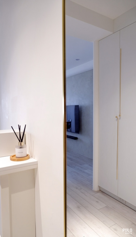臥室部分,沿用原本的衣櫃位置,設計師用系統板和木作重新打造出潔白的衣櫃。