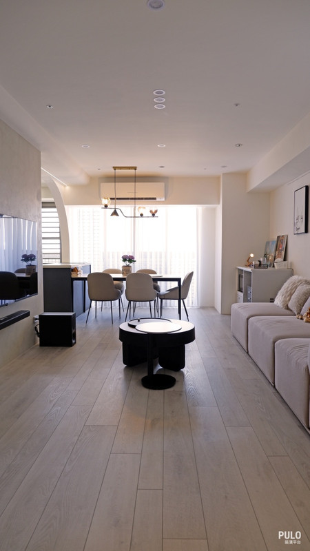 這樣一來,客廳、餐廳和廚房之間的空間連結變得自然,整體感受開闊明亮。
