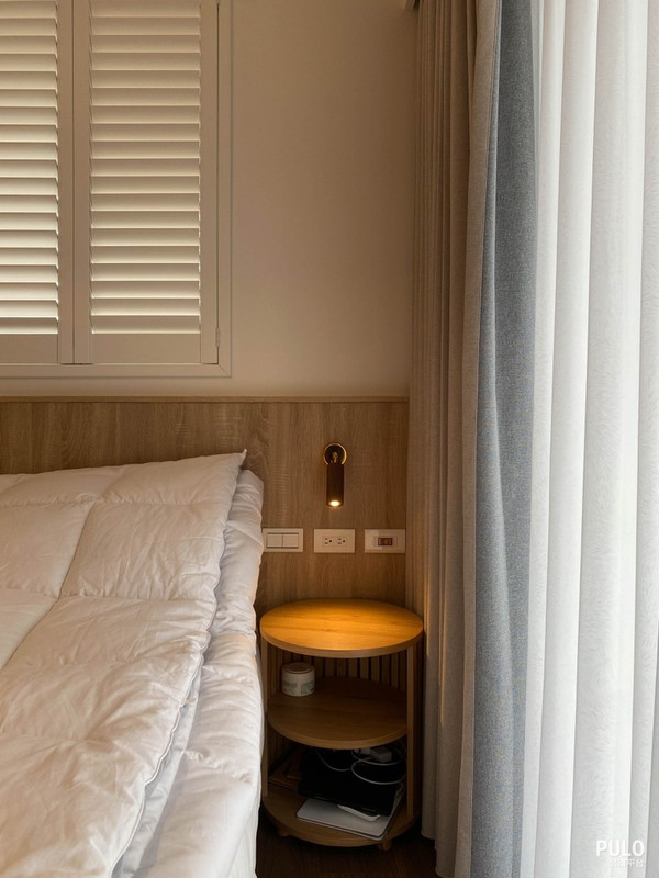 考量到白天需要自然光、晚上又希望有遮蔽效果,這裡選用了百葉窗作為窗飾。
