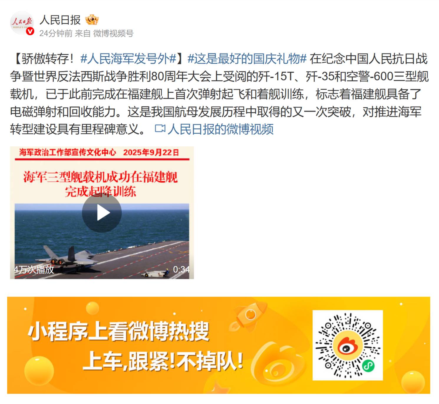 [討論] 人民日報報導福建號完成艦載機的首次彈射