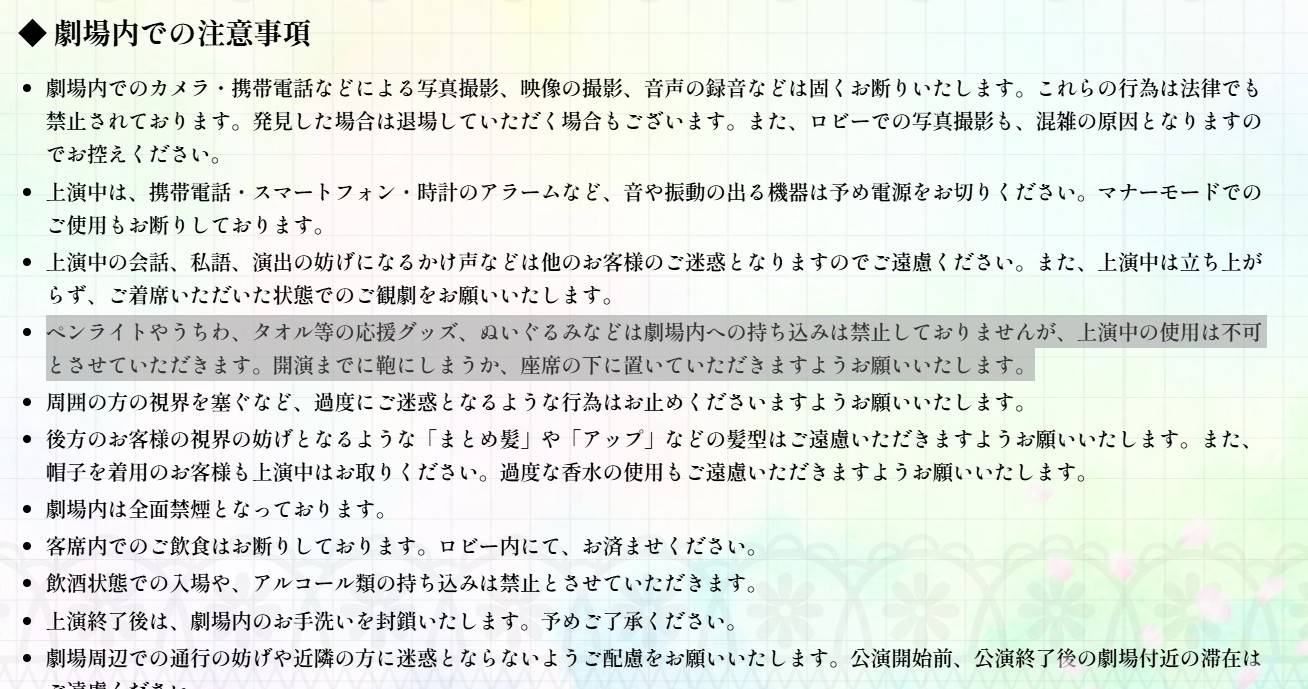 其實官網須知跟推特上粉絲都有提醒不要帶手燈推巾等等