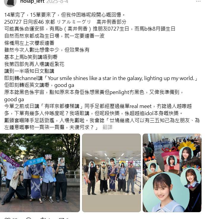 這裡要來分享紀錄七月底日向坂14單的京都實體