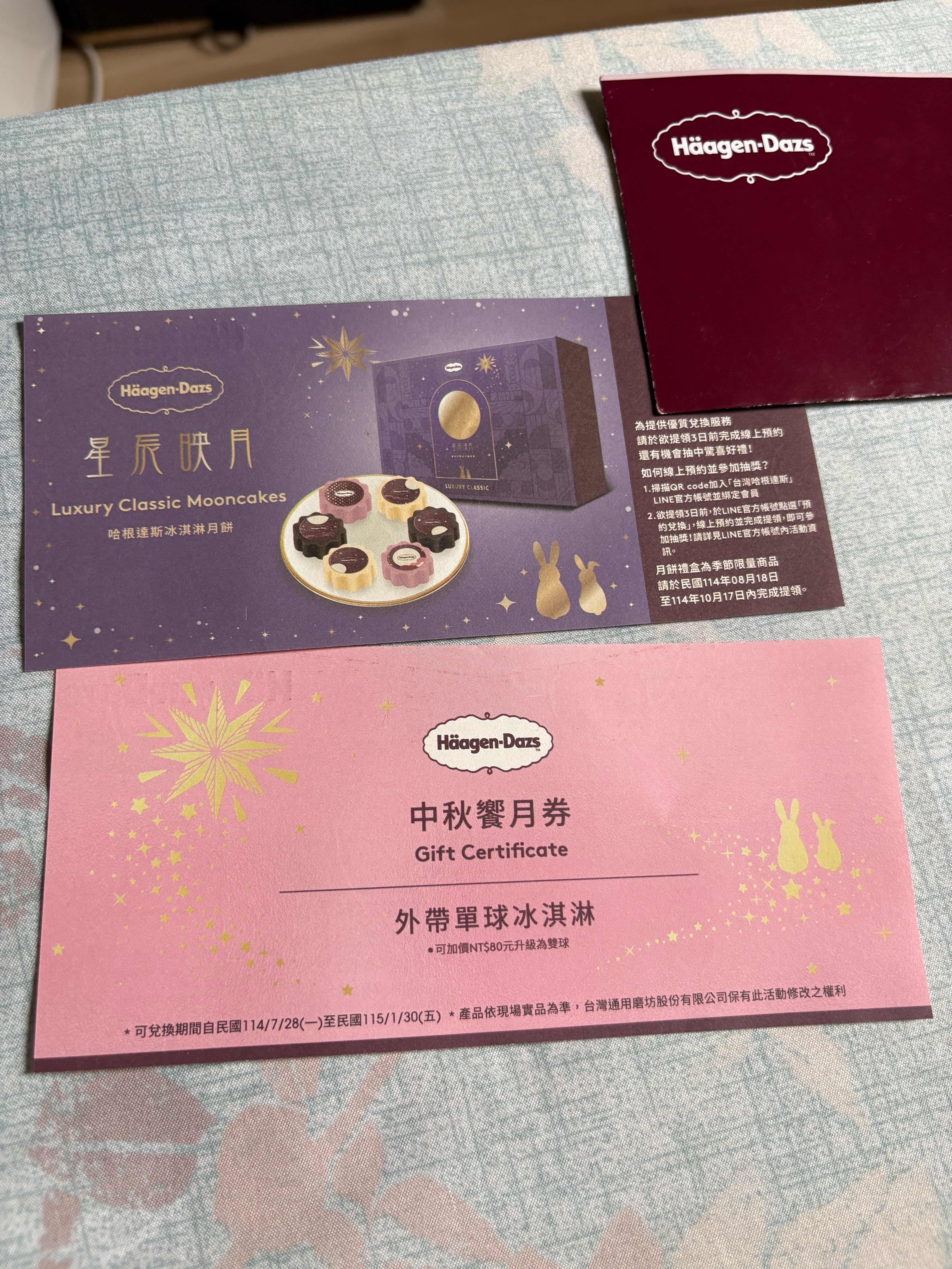 [交換] 北屯/哈根達斯冰淇淋月餅+饗月券換西堤交換項目:哈根達斯冰淇淋月餅璀璨星願*1張+中秋饗月券*1張 璀璨星願兌換日期112/10/06日前 中秋饗月券兌換日期113/04/18日前 交換代價:![[交換] 北屯/哈根達斯冰淇淋月餅+饗月券換西堤 [交換] 北屯/哈根達斯冰淇淋月餅+饗月券換西堤](https://i.imgur.com/5WPrEgGb.jpg)
