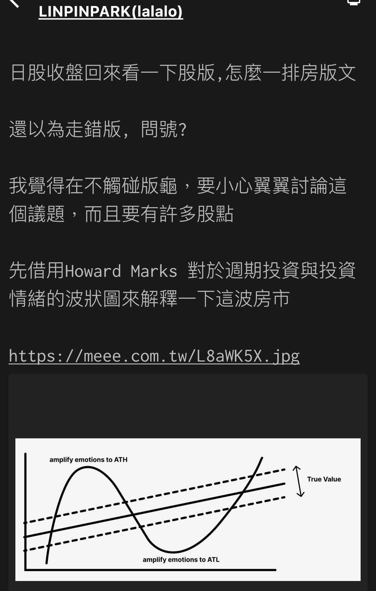 附上有錢人對房市的觀點給魯空取暖,現在在高點,