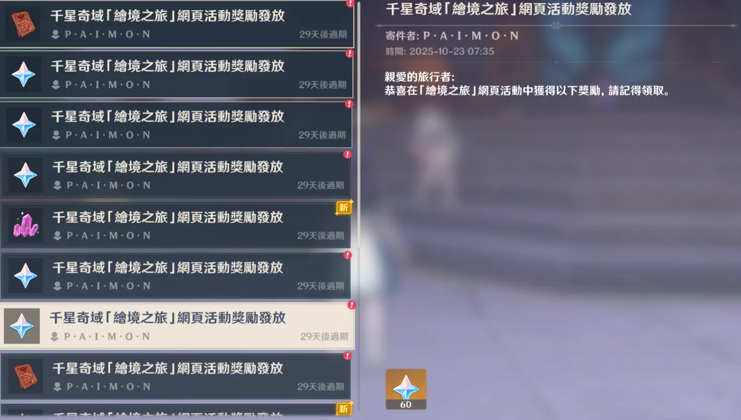 完成條件或綁定新手、回歸者可以獲得抽獎券,每五抽必得隨機數量原石