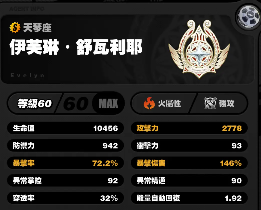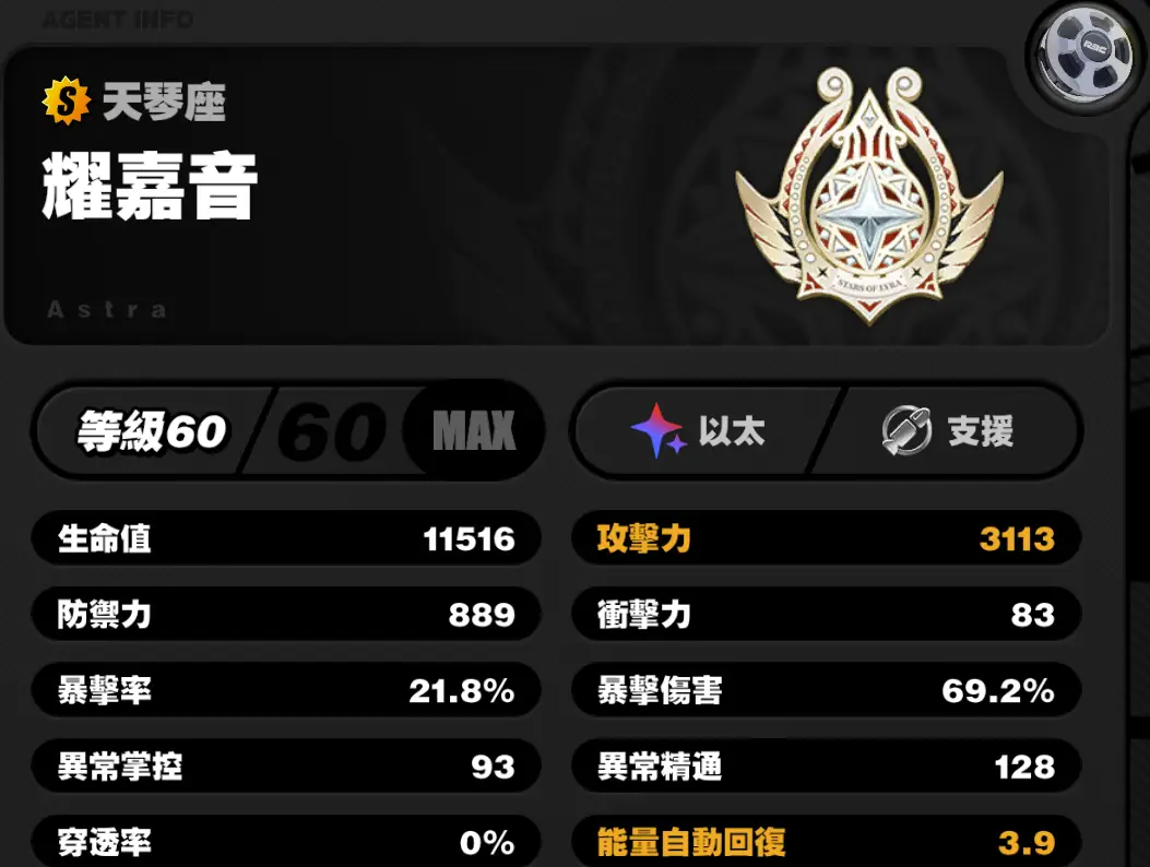 [絕區] 嘉音的6號位主詞條我武器是帶阿炮 一直以來都是用回能 因為玩鐵道玩的 總覺得回能還是比攻擊buff來的強 所以我攻擊力buff都吃不滿 面板30xx 轉化成buff只有1079 最近比較認真玩 發現其實我的嘉音能量是跟的上循環 主要是在伊芙琳+妮可隊就業