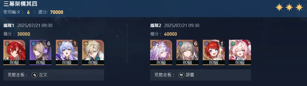Re: [鐵道] 1.5忘卻使用率-銀枝登場鐵道的忘卻關卡還沒有那麼千變萬化的多元性 因此隊伍的空位大多統一如下 隊伍一:【生存1】【主C1】【輔助1】【輔助2】 隊伍二:【生存2】【主C2】【輔助3】【輔助4】 舉個例子,目前生存位前三強(照登場順序)是羅剎、符玄、藿藿38