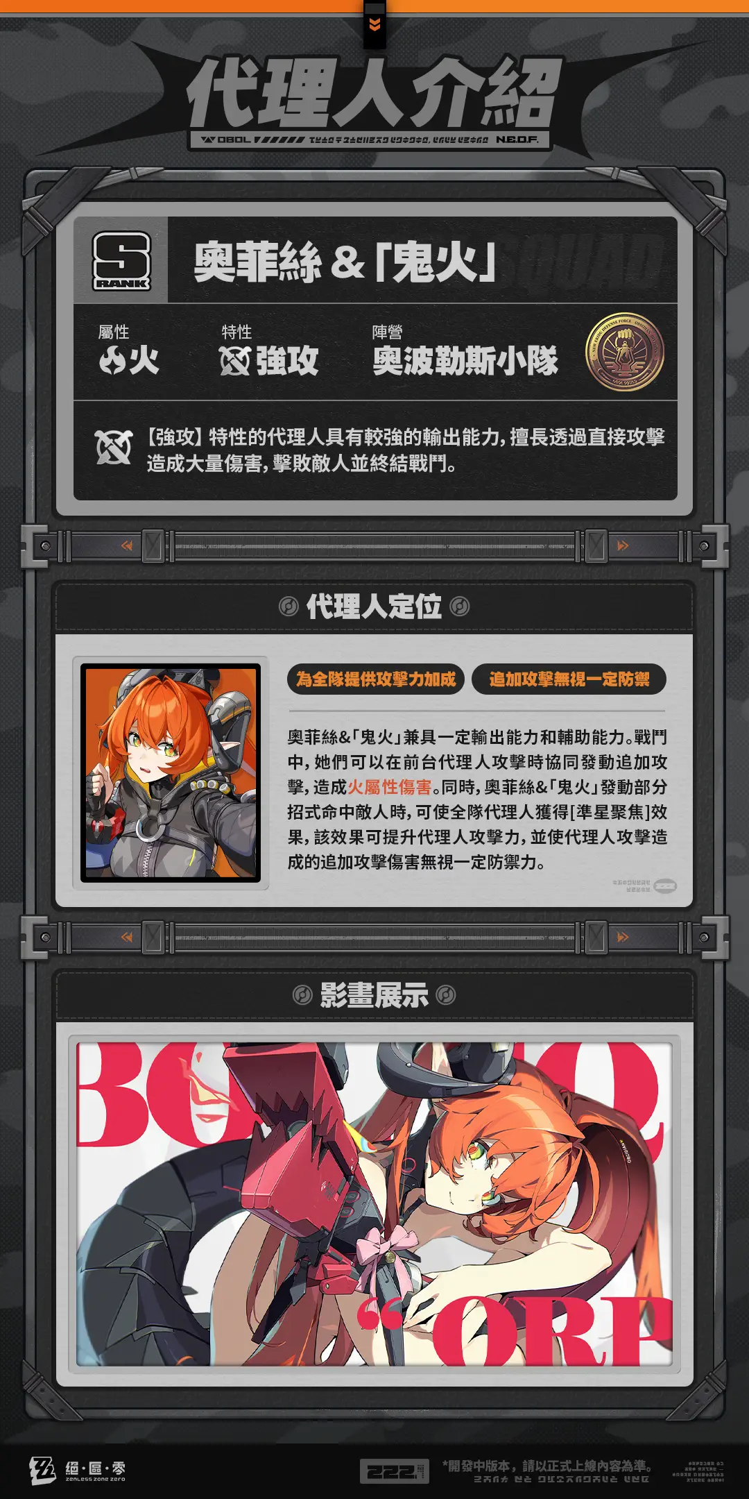 [絕區] 代理人介紹 : 奧菲絲 鬼火